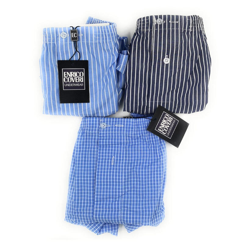 Boxer da uomo Coveri articolo EB1120. Realizzato in cotone popeline irrestringibile, elastico interno. Modello con apertura con due bottoncini per regolare la circonferenza.