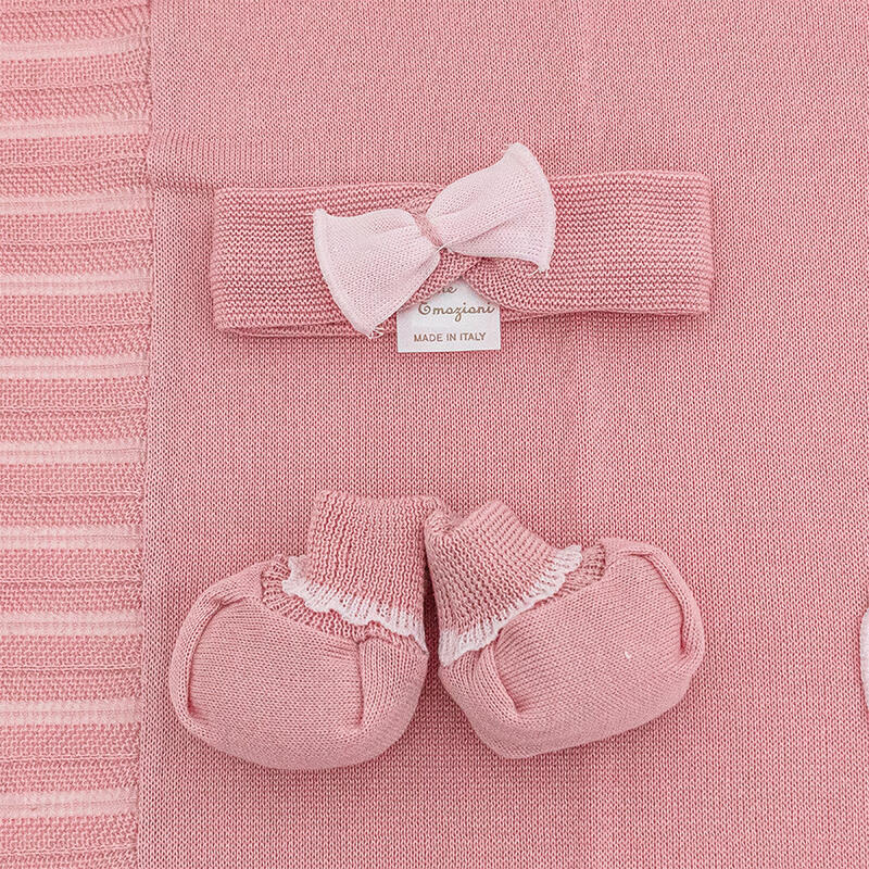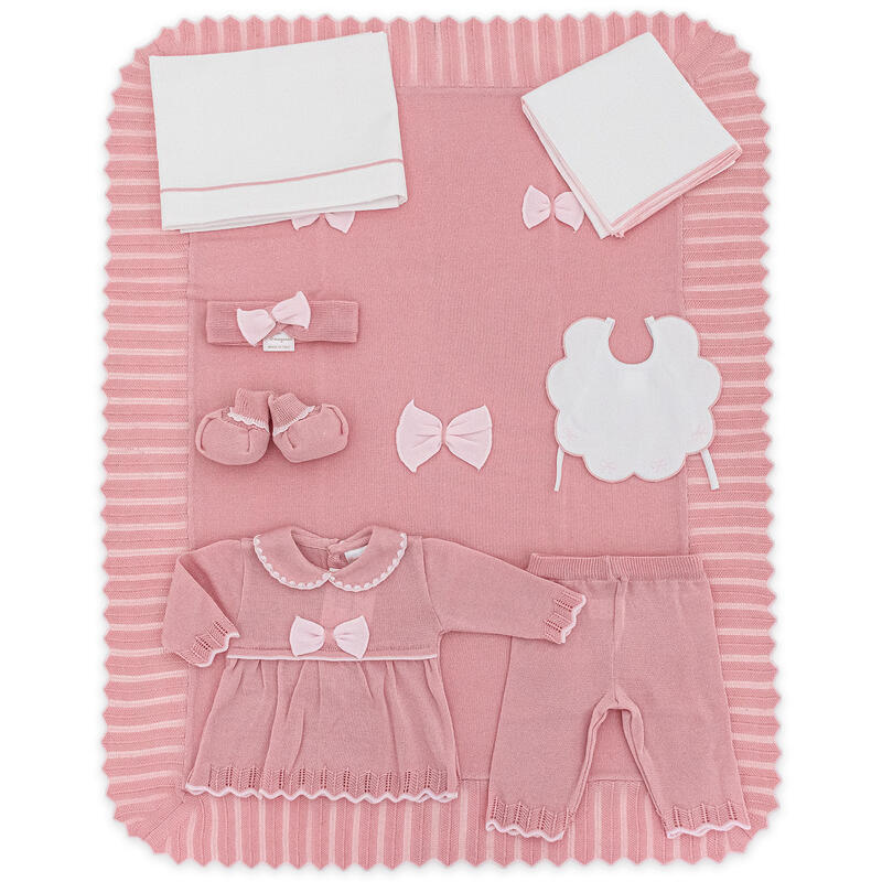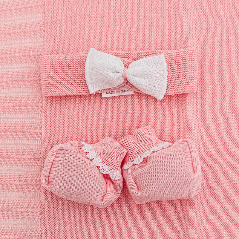 LA CONFEZIONE INCLUDE: COPRIFASCE+FASCETTA E SCARPETTA+COPERTA+LENZUOLO 3 PEZZI + BAVETTA+QUADRATO DI GARZA