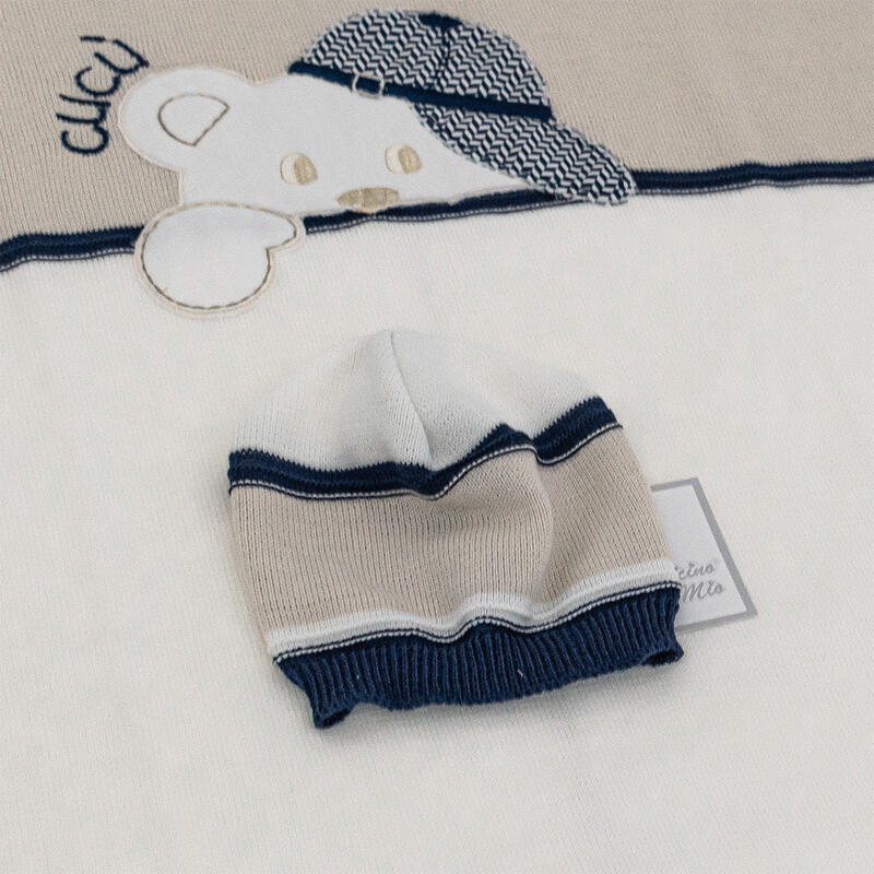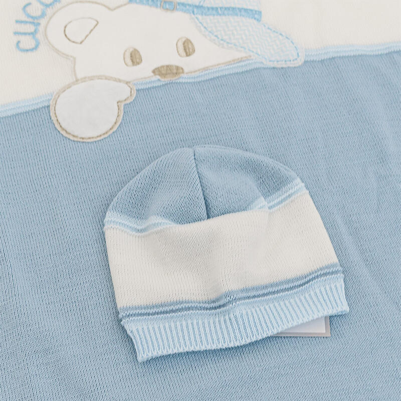 LA CONFEZIONE INCLUDE: COPERTINA+CAPPELLINO+COMPLETO MISURA 0-3 MESI