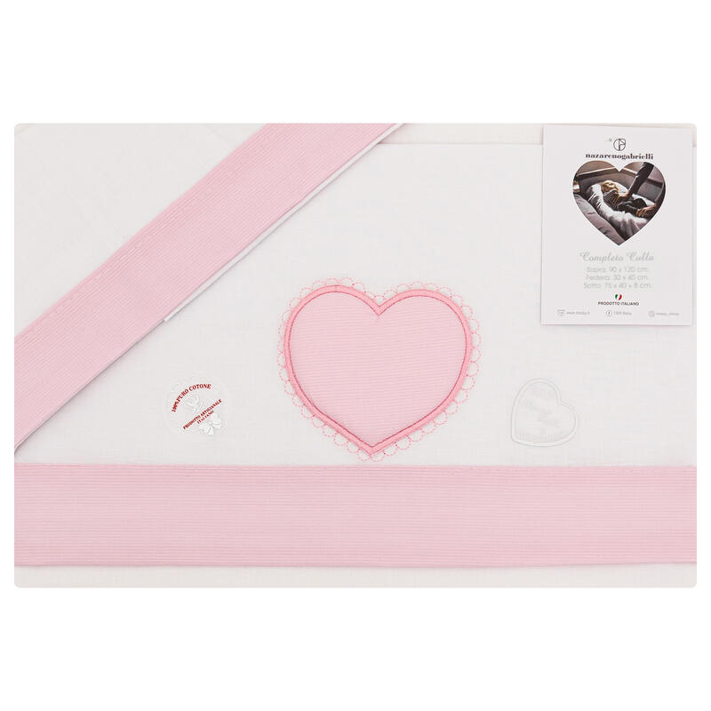- LENZUOLO 3 PZ CULLA RICAMATO CON CUORE RICAMATO