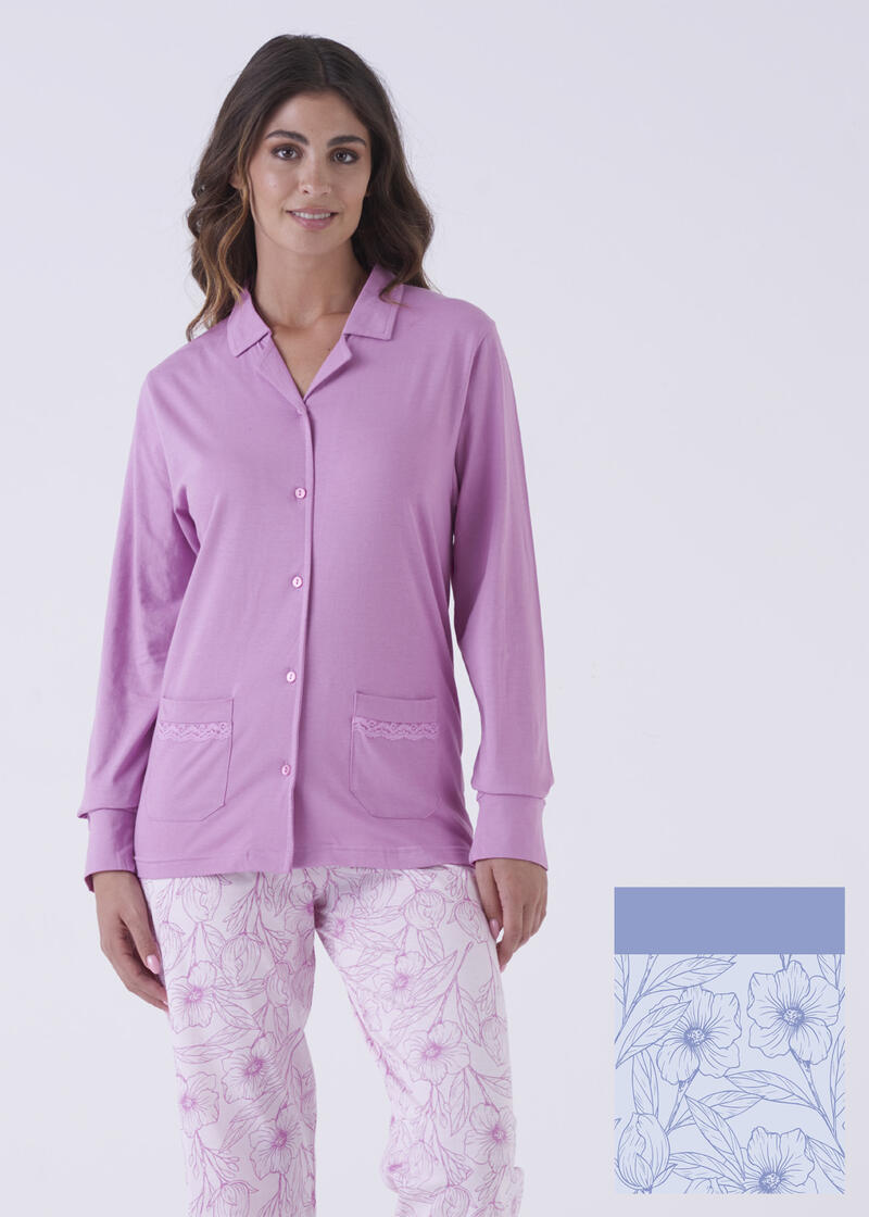 - PIGIAMA DONNA LUNGO JERSEY APERTO IN SCATOLA
