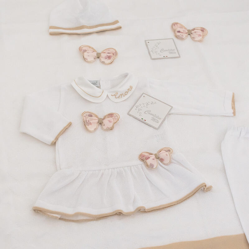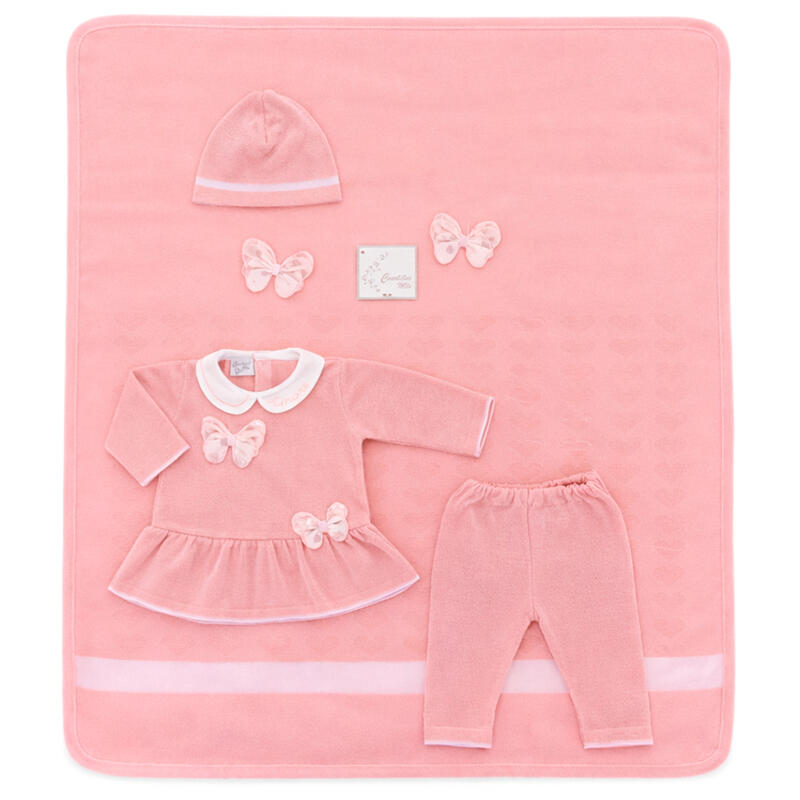 LA CONFEZIONE INCLUDE: VESTINA CON LEGGINS PURO COTONE 0-3 MESI +CAPPELLO+COPERTINA